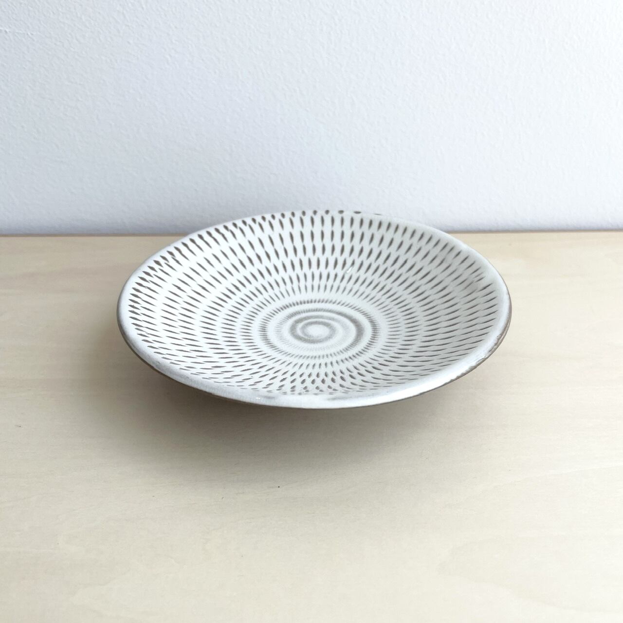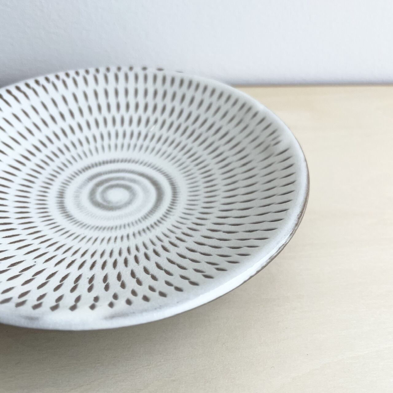 「飛び鉋」や「刷毛目」などの技法で知られる小石原焼。約350年前の江戸時代に当時の藩主が伊万里焼の陶工を招き、中国風の磁器のつくり方を伝えたのがはじまりと言われています。うつわに鉋を当ててリズミカルな模様をつける「飛び鉋」や、刷毛の跡を残す「刷毛目」などの装飾技法が特徴的。小石原焼の技法は県境を隔てた隣町に伝わり、小鹿田焼として栄えました。現在でも50軒以上の窯元が昔ながらの技法を守り、あたたかみのある陶器をつくっています。