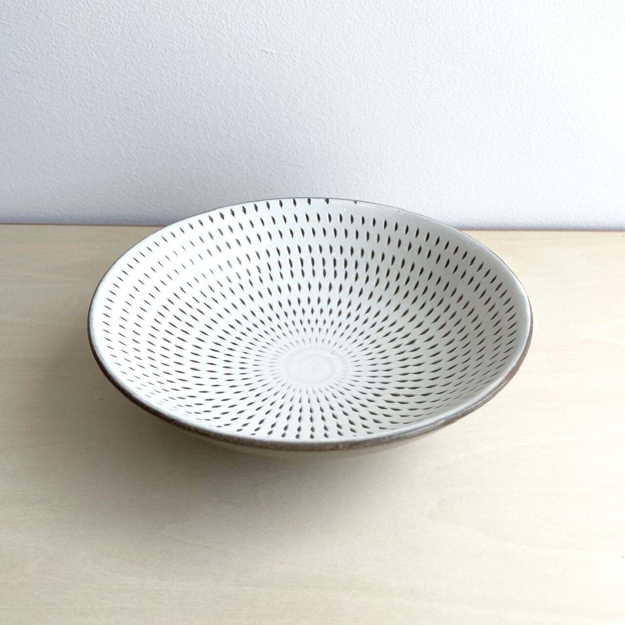 「飛び鉋」や「刷毛目」などの技法で知られる小石原焼。約350年前の江戸時代に当時の藩主が伊万里焼の陶工を招き、中国風の磁器のつくり方を伝えたのがはじまりと言われています。うつわに鉋を当ててリズミカルな模様をつける「飛び鉋」や、刷毛の跡を残す「刷毛目」などの装飾技法が特徴的。小石原焼の技法は県境を隔てた隣町に伝わり、小鹿田焼として栄えました。現在でも50軒以上の窯元が昔ながらの技法を守り、あたたかみのある陶器をつくっています。