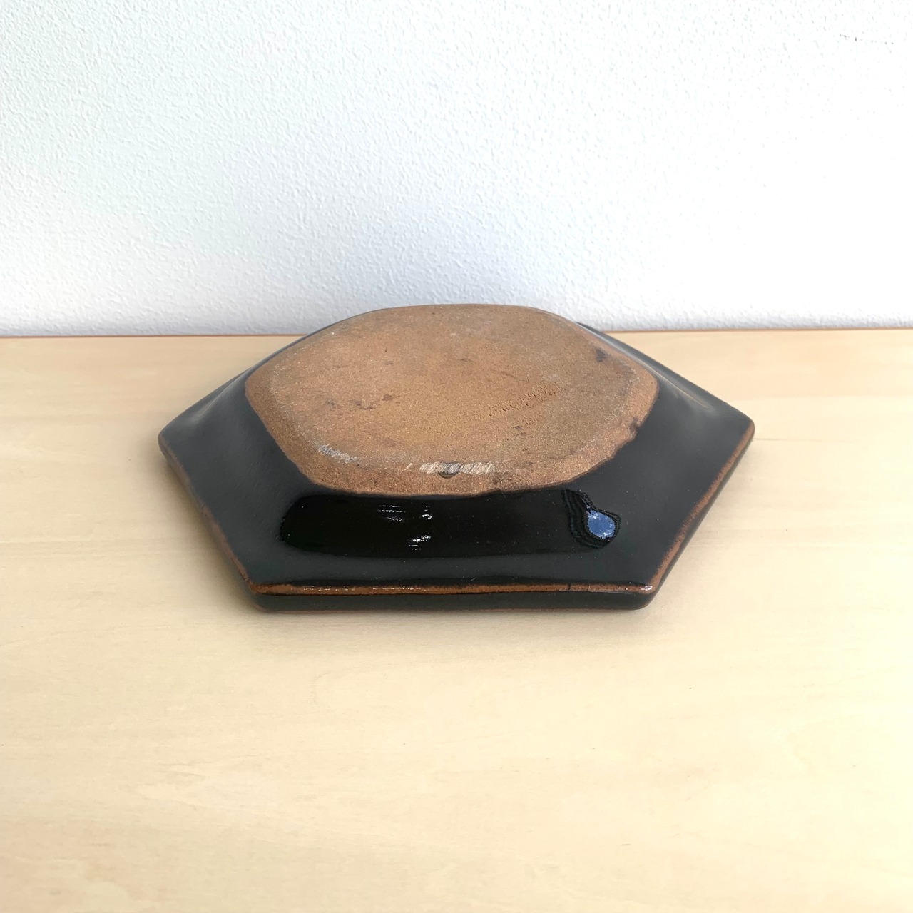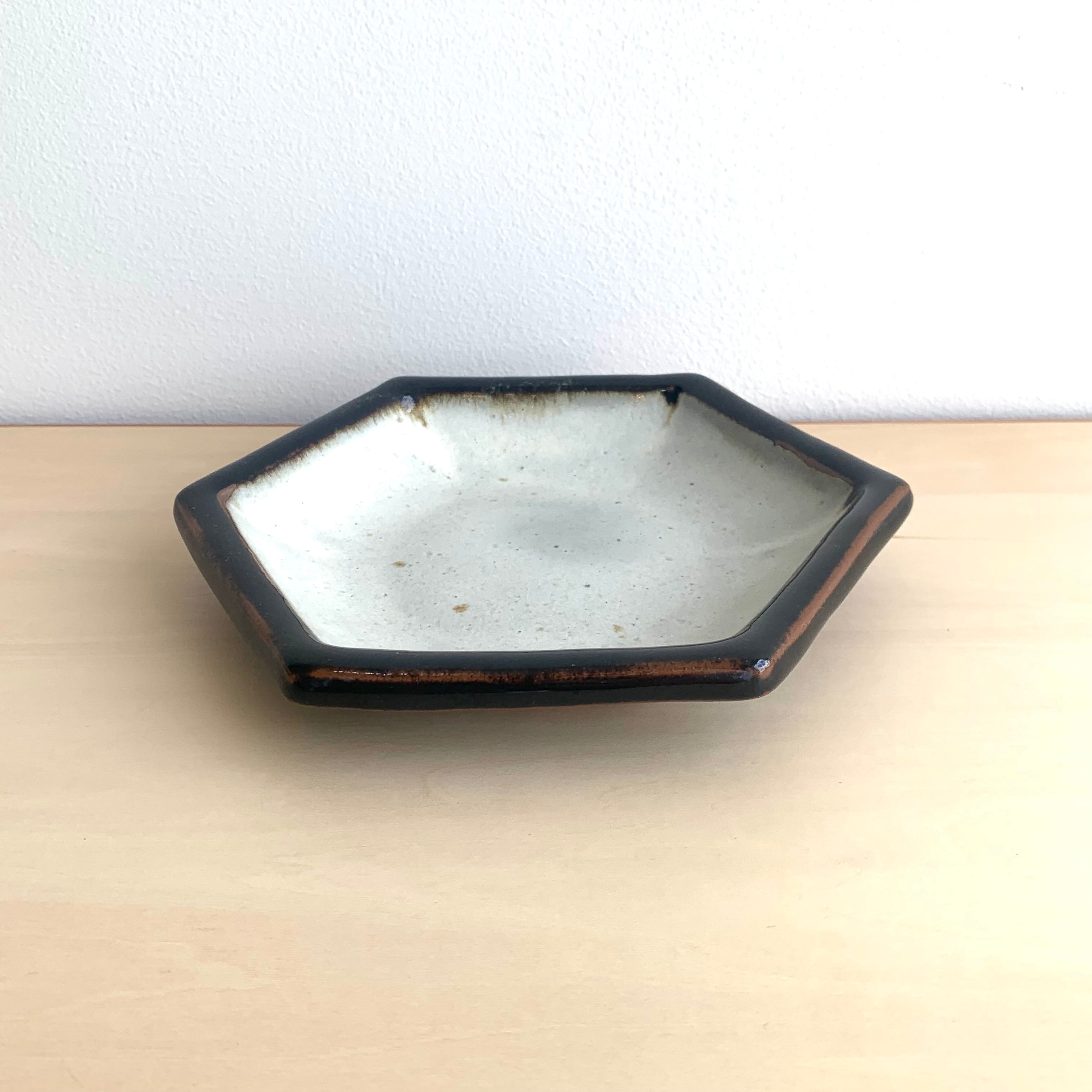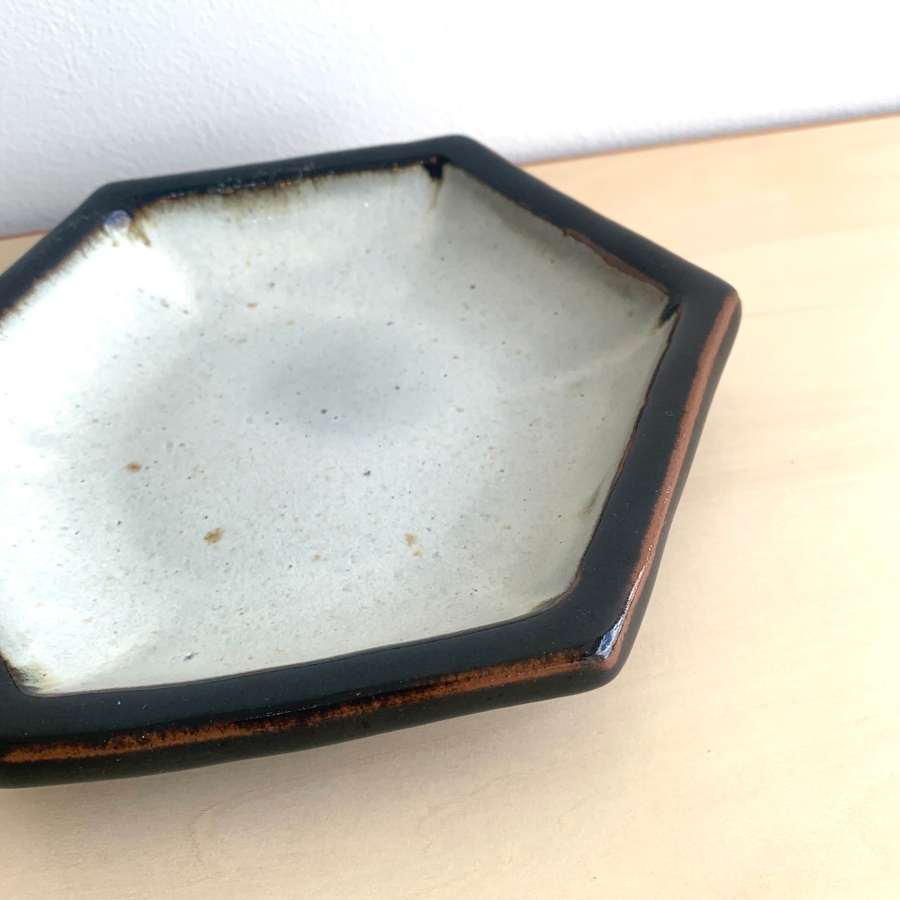俊彦窯 掛け分け 5寸六角皿 黒