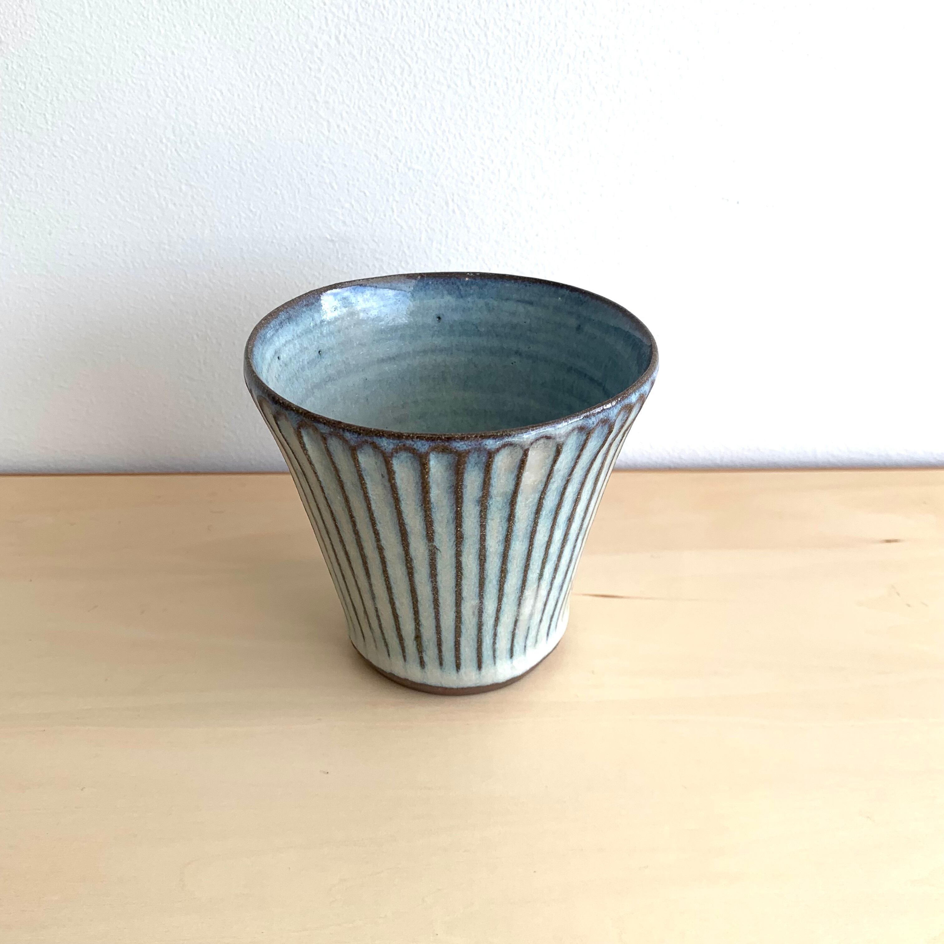 源右衛門窯は丹波焼の伝統を大切にし、親子で作陶されています。鎬(しのぎ)の器は、父である市野晃司さんの作品。鎬の模様は特製のカンナを使い一つ一つ削り出して作られ、丁寧な手仕事の温かみが感じられます。